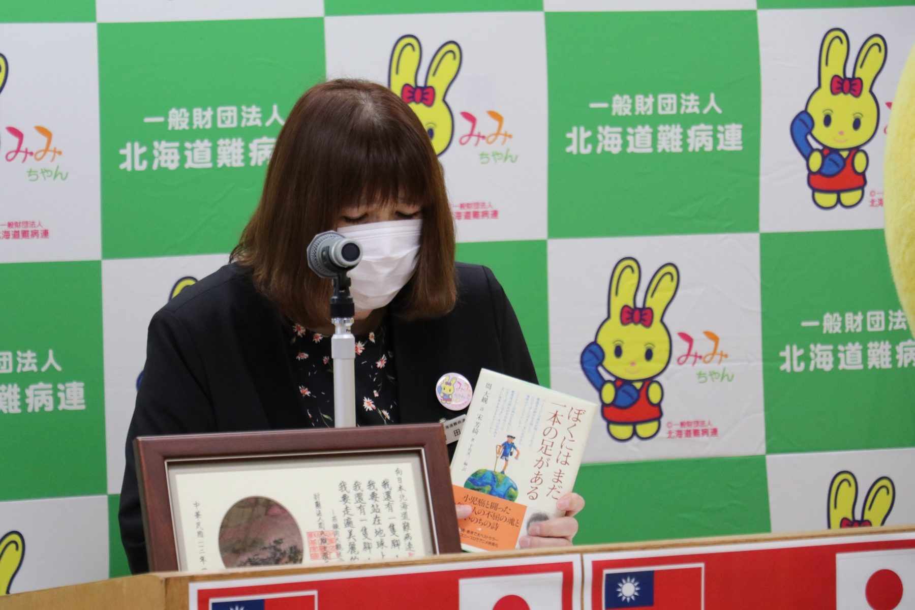 周大觀文教基金會創辦人周進華一行9人送愛北海道難病センター義演、生命分享交流,並捐贈周大觀遺作《我還有一隻腳》日文版、台灣小提燈等鼓勵弱勢病童讀出希望,由代表理事增田靖子代表接受,感動在場與會人員、病童等,見證「愛無國界」。
